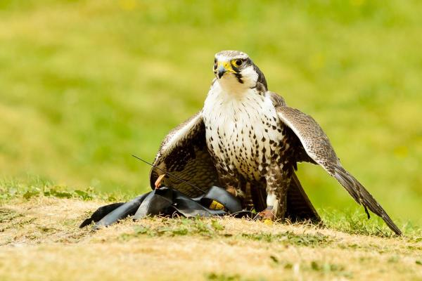 Another type of falcon often confused for the peregrine falcon, this bird of prey breeds from eastern Europe to Manchuria. It has brown and gray or white plumage and feeds mainly on rodents and birds, hunting in open grasslands. It is migratory, wintering in various regions of Asia and Africa.