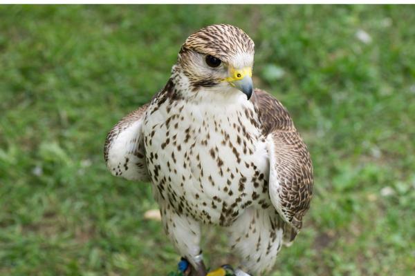 A medium-sized bird that lives in western North America, ranging from Canada to northern Mexico. It is a large type of falcon with gray-brown, spotted plumage. It feeds mainly on small mammals and birds, hunting in rapid flight. While it is similar to the peregrine falcon, it can be differentiated from its flight patterns and its distinctive call. They are also more opportunistic in terms of diet.