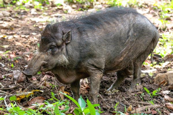 Another hog from the Sus genus, the Bornean bearded pig (Sus barbatus) is characterized by its prominent beard and sometimes tail tassels. It lives in Southeast Asia, especially Sumatra, Borneo, the Malay Peninsula and the islands of the Sulu Archipelago. It is also known as the Sunda bearded pig.