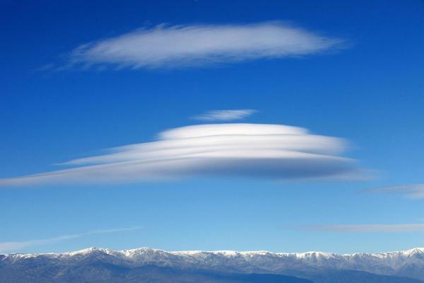 Lenticular clouds, named for their resemblance to lentils (a type of bean), are stationary-looking clouds with a distinctive lens or saucer shape. They most frequently appear in mountainous areas where stable air currents are forced to rise over mountain peaks.