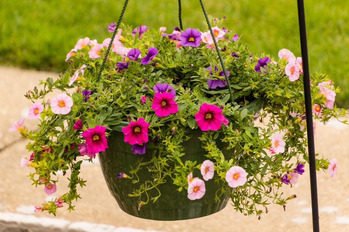Calibrachoa naturally grows in a trailing or cascading pattern, making it perfect for hanging displays. One of their most convenient features is that spent flowers drop off on their own, eliminating the need for deadheading. Their flowers attract many beneficial pollinators including hummingbirds, butterflies, and bees.