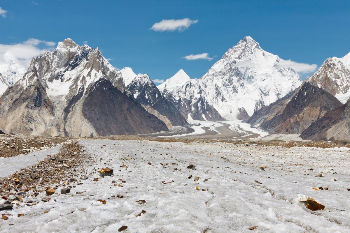 Rising between the towering peaks of the Himalayan and the Karakoram mountain ranges, the Baltoro Glacier stretches for 57 km. This makes it one of the longest glaciers in the world outside the polar regions with an area of 3,678 km².