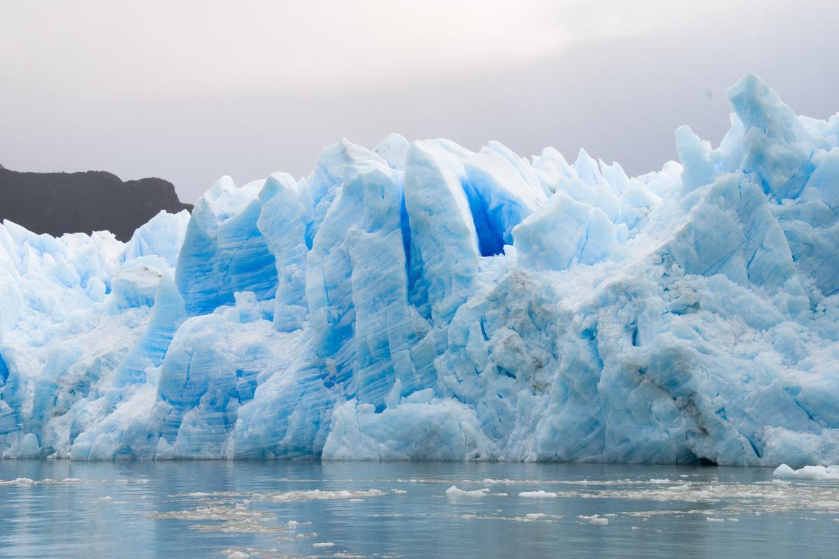 At the southern end of Chilean Patagonia in the Southern Ice Field stands the Brüggen Glacier, also known as the Pío XI Glacier. It is a large mass of ice that is recognized as the largest glacier in the southern hemisphere. It has a surface area of 1,242 km², extending 64 km in length and reaching a height of up to 75 m at its front. Unlike other glaciers that flow into lakes or fjords, the Brüggen Glacier flows directly into the Pacific Ocean.