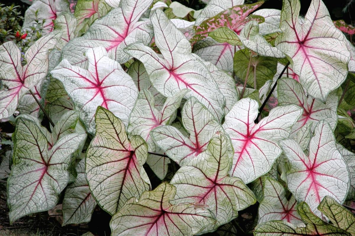 Caladiums are tuberous or herbaceous plants known for their distinctive heart-shaped leaves. Some varieties have unique features like speckled leaves or ruffled edges. With over 1,000 variations in color and shade, they offer a diverse range of options to brighten any space.