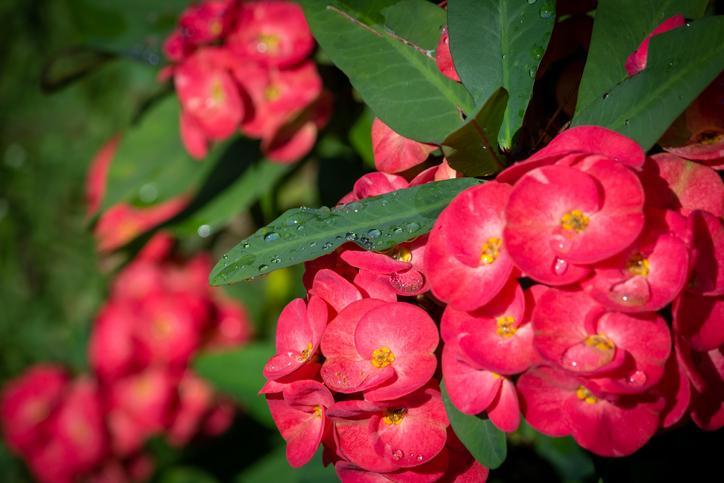 Finally, an outdoor crown-of-thorns plant can tolerate some rain, but too much moisture can lead to fungal diseases that can also affect flowering.