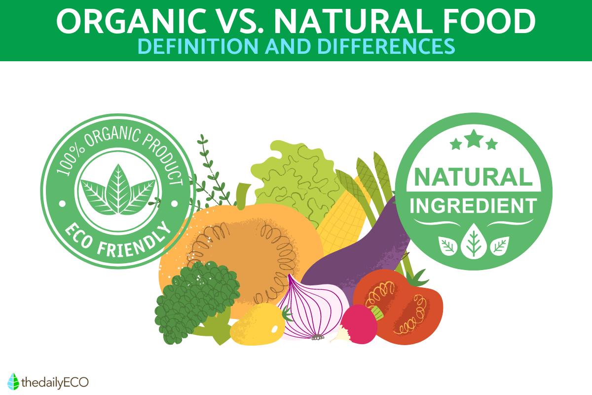 The differences between organic food and natural food are to do with production. Food production involves everything from before the product is grown to when it reaches the supermarket. This applies both to food crops and that which is derived from animals.
