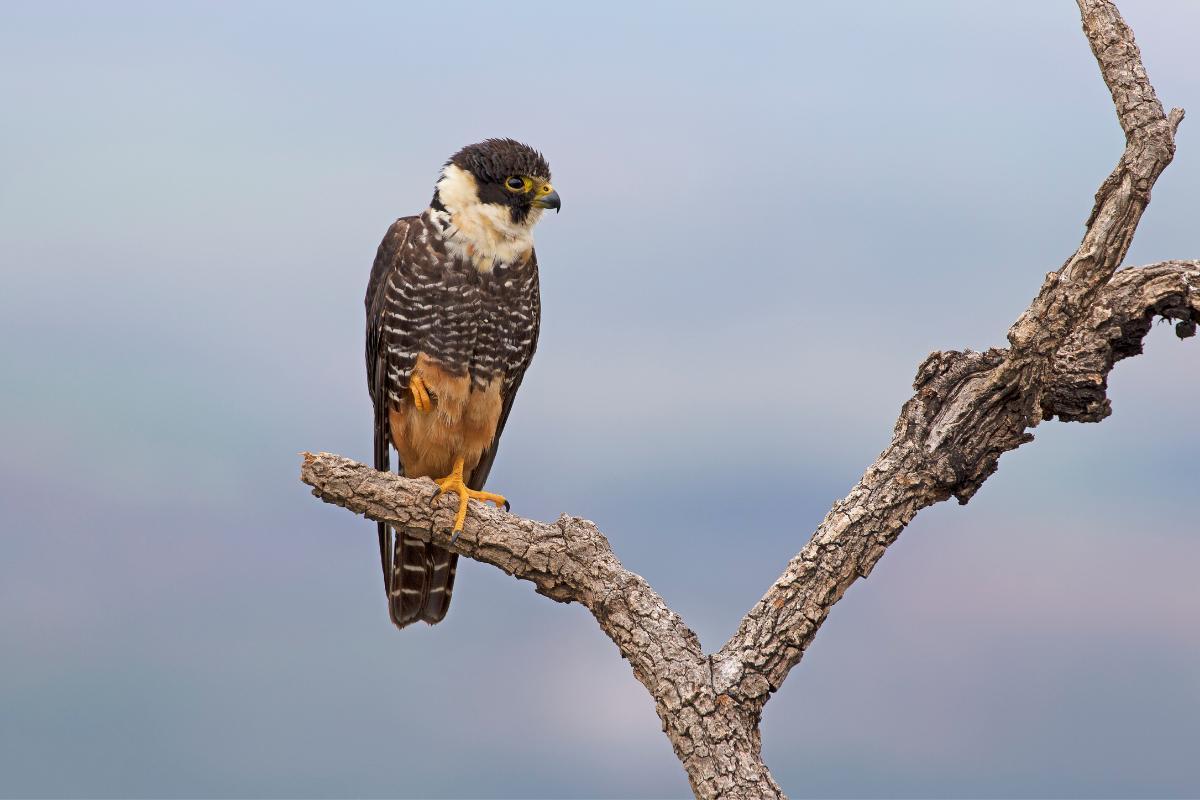 You may be able to see a pattern in the common names of the different types of wild falcons and the orange-breasted falcon is not an exception. Named after the rust colored plumage seen on its chest and legs, this medium-sized bird is found from southern Mexico to northern Argentina. It has strong talons for catching birds in flight, but kills with its beak like other falcons. It prefers wooded environments and occupies a distinct ecological niche from the peregrine falcon.