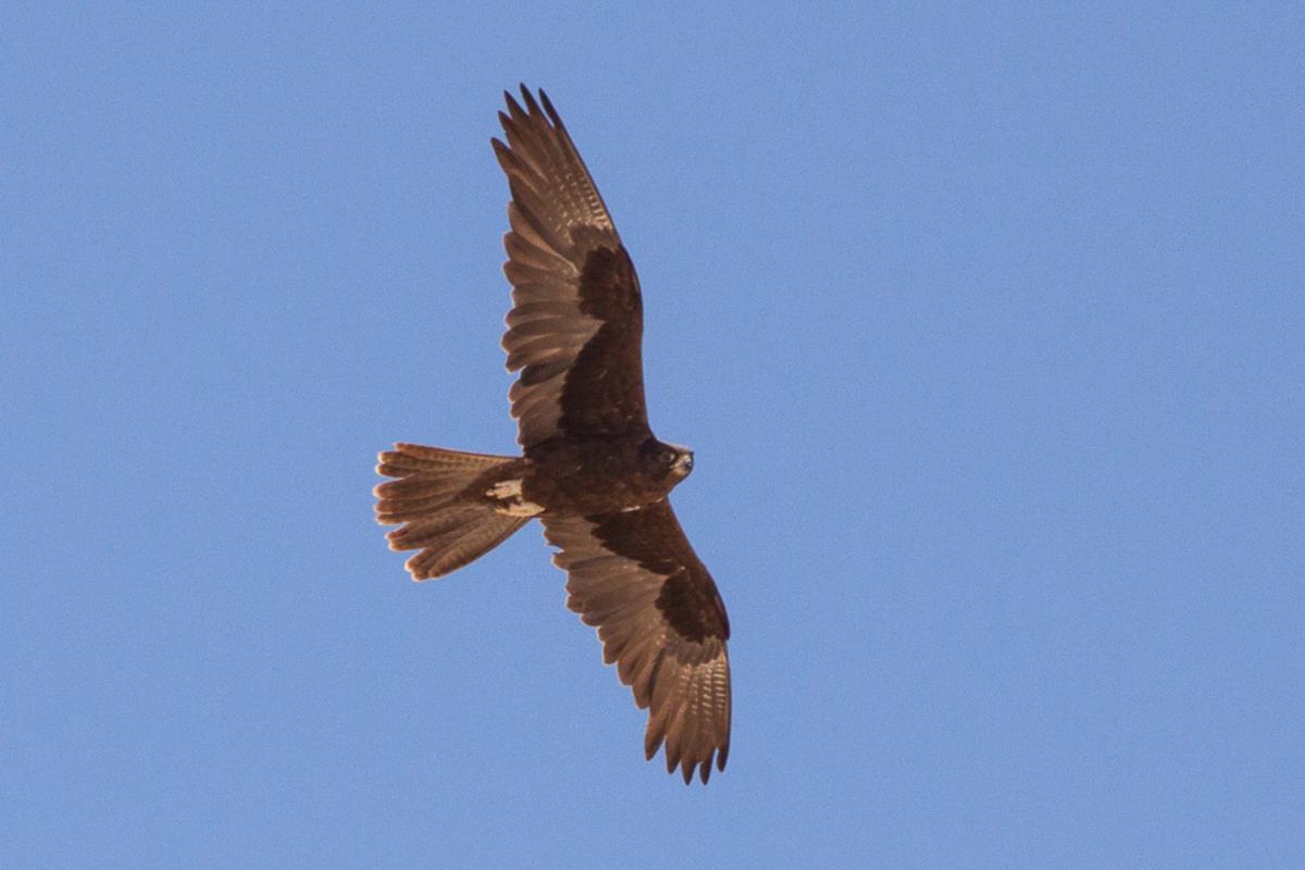 A medium-sized bird of prey that breeds on Mediterranean islands, especially in Greece. There are two plumage morphs, one a sooty brown with black coverts and the other has buff underparts and a paler base. Its diet consists primarily of large insects and migratory birds, which it captures in flight.