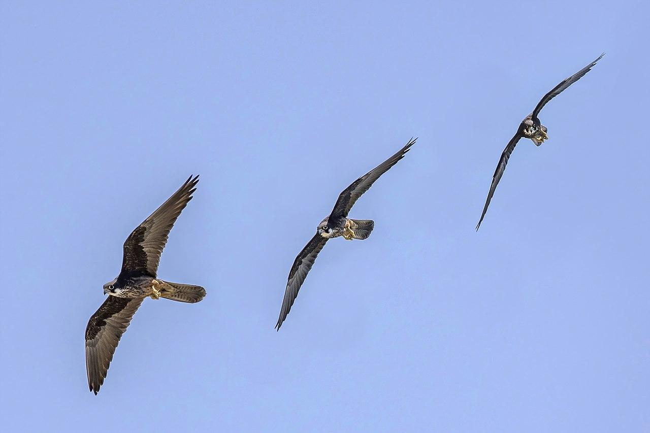 A medium-sized bird of prey that breeds in Africa, southeastern Europe and Asia. Their plumage varies from grey to greyish-brown, but they have darker feathers on the dorsal side. It feeds mainly on birds in flight, hunting in horizontal pursuits. They have distinctive mating rituals which involve synchronized movements between males and females.