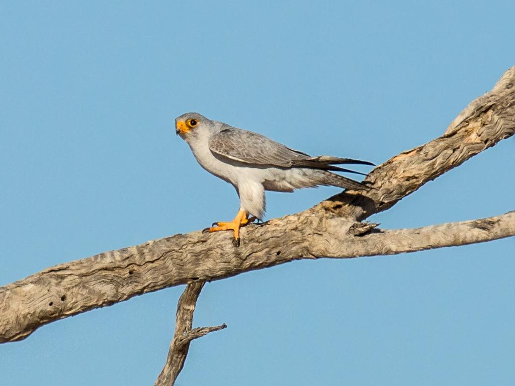 A rare and medium-sized type of falcon species that lives mainly in Australia and Tasmania. It prefers arid and semi-arid areas. Its name derives from its gray plumage, but it has striking yellow legs and beak. Thier population range has shrunk considerably and are considered ‘vulnerable’ by the IUCN.