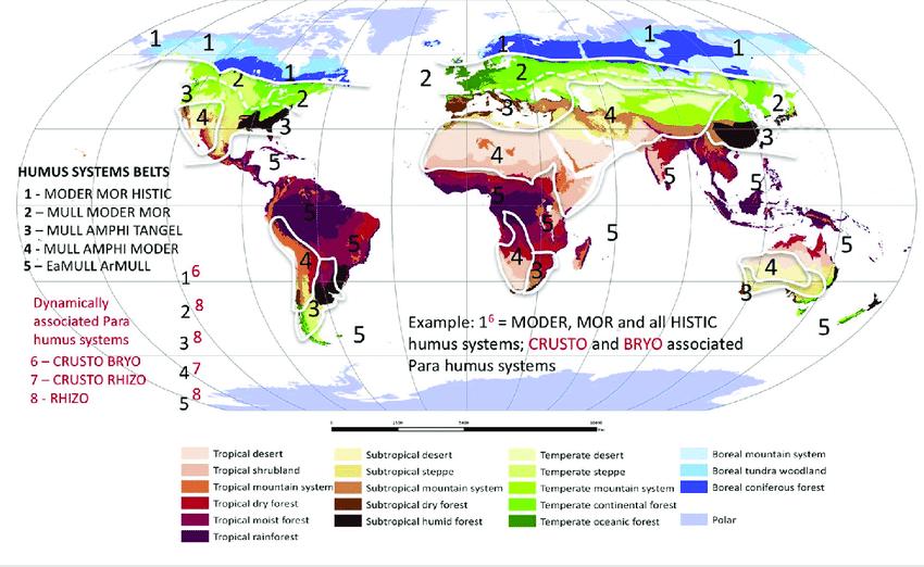 These are regions with moderate temperatures, usually abundant rainfall and animals that hibernate or migrate depending on the time of year. The soil in these areas is very rich and fertile. This is thanks to the very dense plant cover and the humidity levels and warm temperatures. This is conducive to development of the organic-matter parto of soil known as humus, which is a great fertilizer. The forests of the Mediterranean area are good examples of these types of mild climate zones.