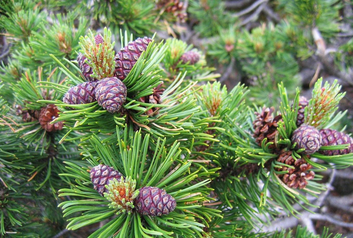 This type of pine tree is native to Europe, specifically from the mountainous areas of Central Europe. This species grows at high altitudes, between 1,500 and 2,500 meters above sea level. It and can grow to a height of up to 66?/20 m. It is characterized by having a rounded crown and green needles which are rigid and sharp. As you can see in the photo below, the pinecones of this tree can have a shade of purple on them.