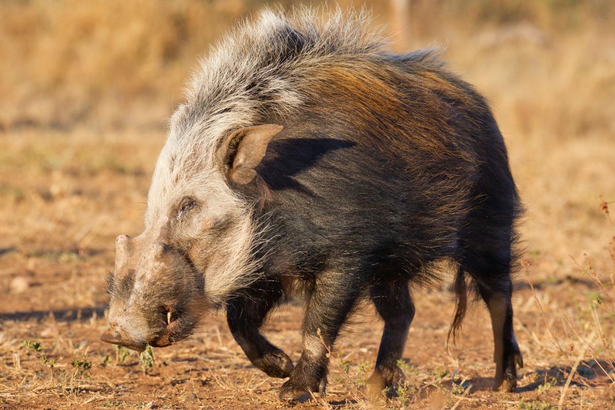 The bushpig (Potamochoerus larvatus) is a wild boar found in forests and riverine areas of East and Southern Africa. Some populations have also been recorded in Madagascar. These swine are nocturnal and generally live in large social groups. They are considered very aggressive, so it is recommended you do not go close to them.