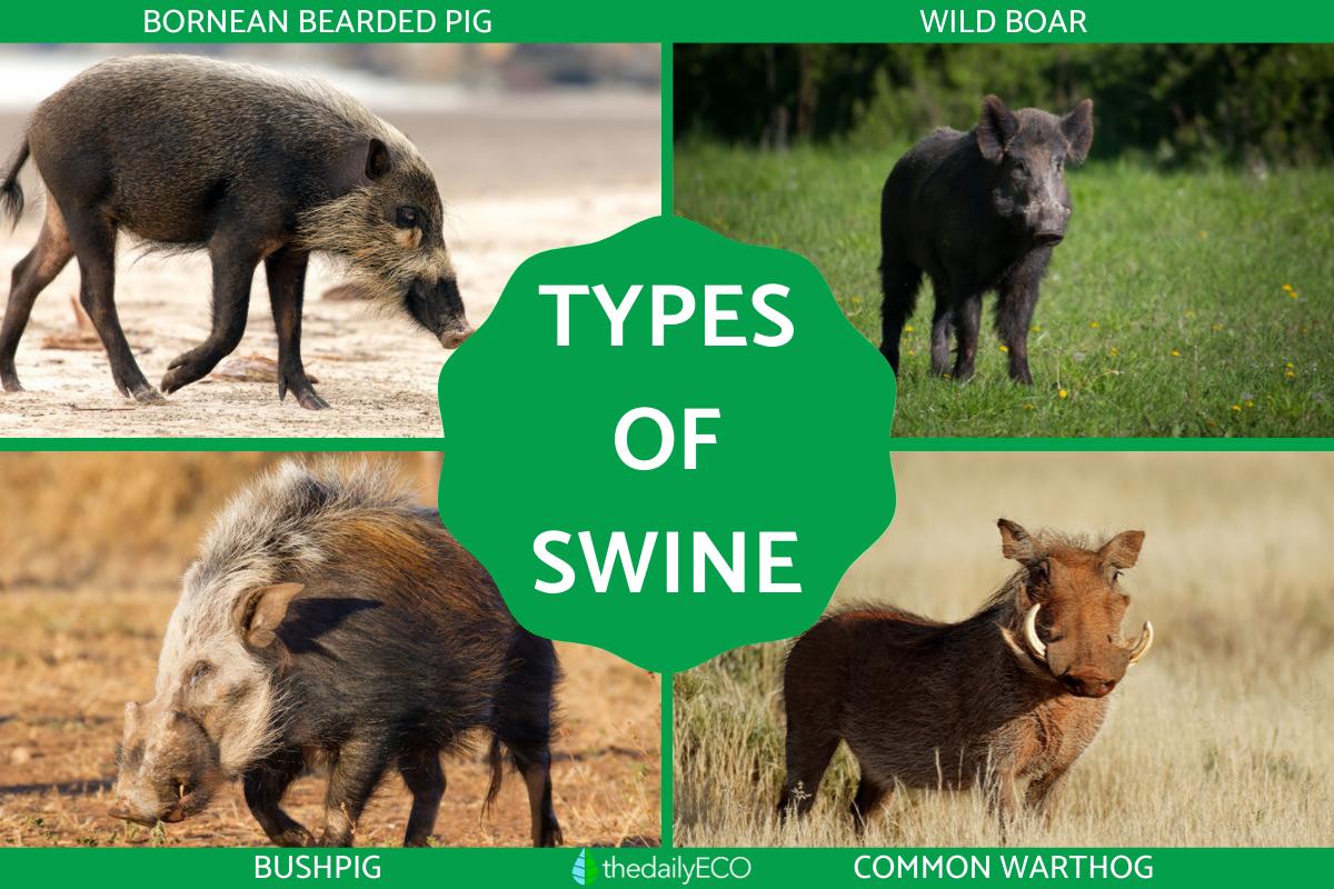 Now you know what swine are, you can see some example species below. These include the various species of wild pigs you can find in nature.