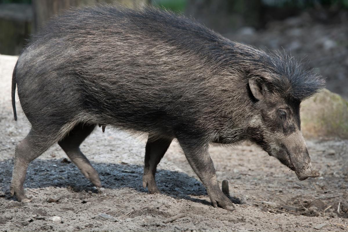 Another hog from the Sus genus, the Bornean bearded pig (Sus barbatus) is characterized by its prominent beard and sometimes tail tassels. It lives in Southeast Asia, especially Sumatra, Borneo, the Malay Peninsula and the islands of the Sulu Archipelago. It is also known as the Sunda bearded pig.