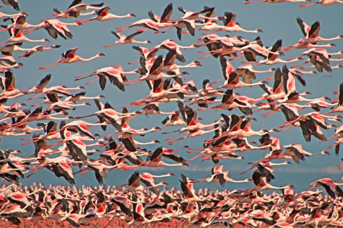 Flamingos limit their flight to periods when it is necessary. Generally speaking, they tend to wade in search of food. There are situations that require them to take flight, primarily to escape predators, return to safer waters or discover new feeding grounds. It is true to say that flamingos spend more of their time on the ground than in the air.