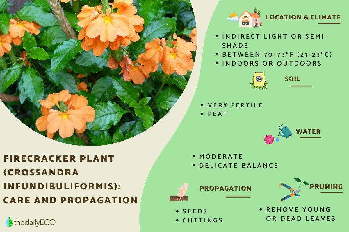 - The firecracker plant requires a lot of light, but not direct sunlight. If it is under direct sunlight it will wilt, especially the flowers. When keeping the crossandra plant outdoors, it should not receive intense direct light. Although it is a tropical plant, it does well in some shade and indirect light.