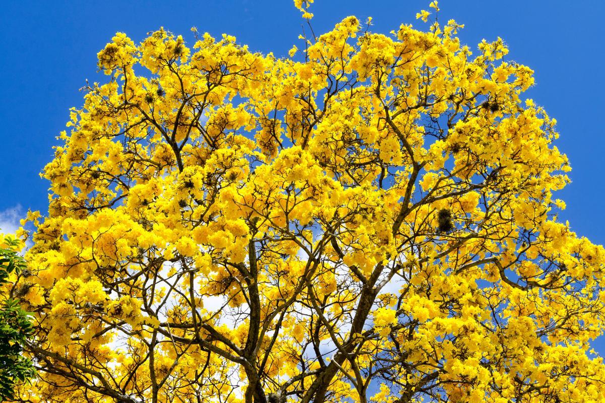 This is a spectacular tree that produces vibrant yellow flowers, which bloom in May and April. It sheds all its leaves and becomes completely covered in blossoms, all bursting from different trees at the same time. This creates an unforgettable spectacle that is amazing, as long as you have enough space in the garden. It is native to Central America, but has naturalized in other warm climates. It can bloom up to three times per season.