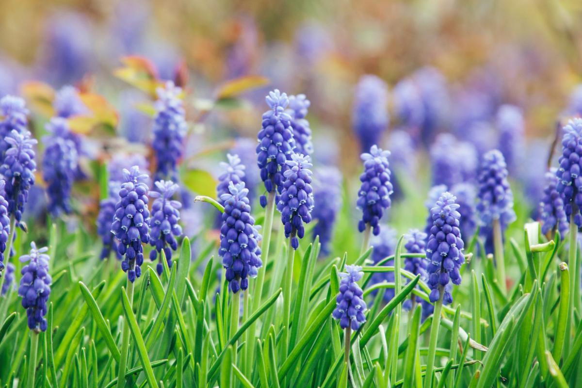 The grape hyacinth resembles a hyacinth bearing grapes, hence the common name. They are highly sought after for gardening due to their beautiful appearance. They are types of spring flowers which can be seen in April.