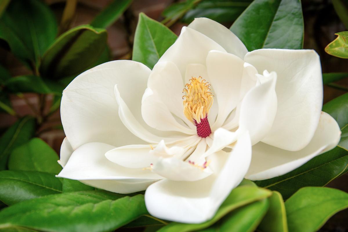 These flowers bloom in April and May, but it is April hen they reach their peak. Also known as bull bay, they produce enormous white flowers which are 12" (30 cm) in diameter and a fragrant aroma. The leaves are dark green, glossy and thick. They hang from large trees that reach 52 ft (25 m) in height.