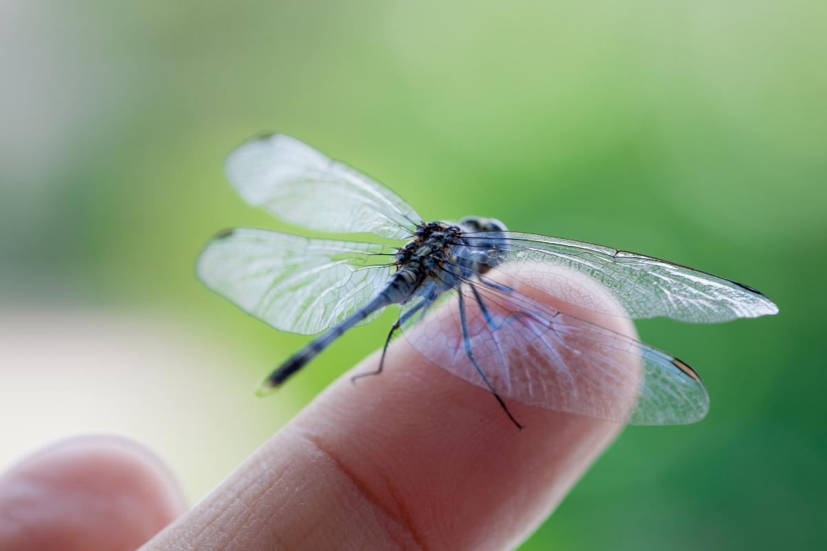 Are dragonflies dangerous? Not at all. While dragonflies have powerful jaws to hunt and devour their prey, they do not use them against humans. They have no stinger or venom glands, so they don't sting, and if they land on a person's skin, they do so simply out of curiosity or to rest.
