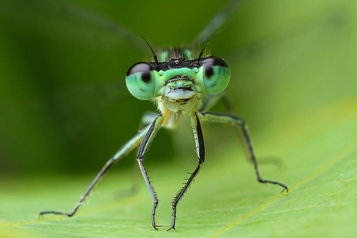 Dragonflies' eyes are so large that they occupy almost their entire head, and for good reason: each eye can contain up to 30,000 ommatidia, the basic units of the compound eye. This allows them to see in almost all directions without moving their head. Furthermore, their vision isn't just panoramic, but also highly sensitive to movement and colors.