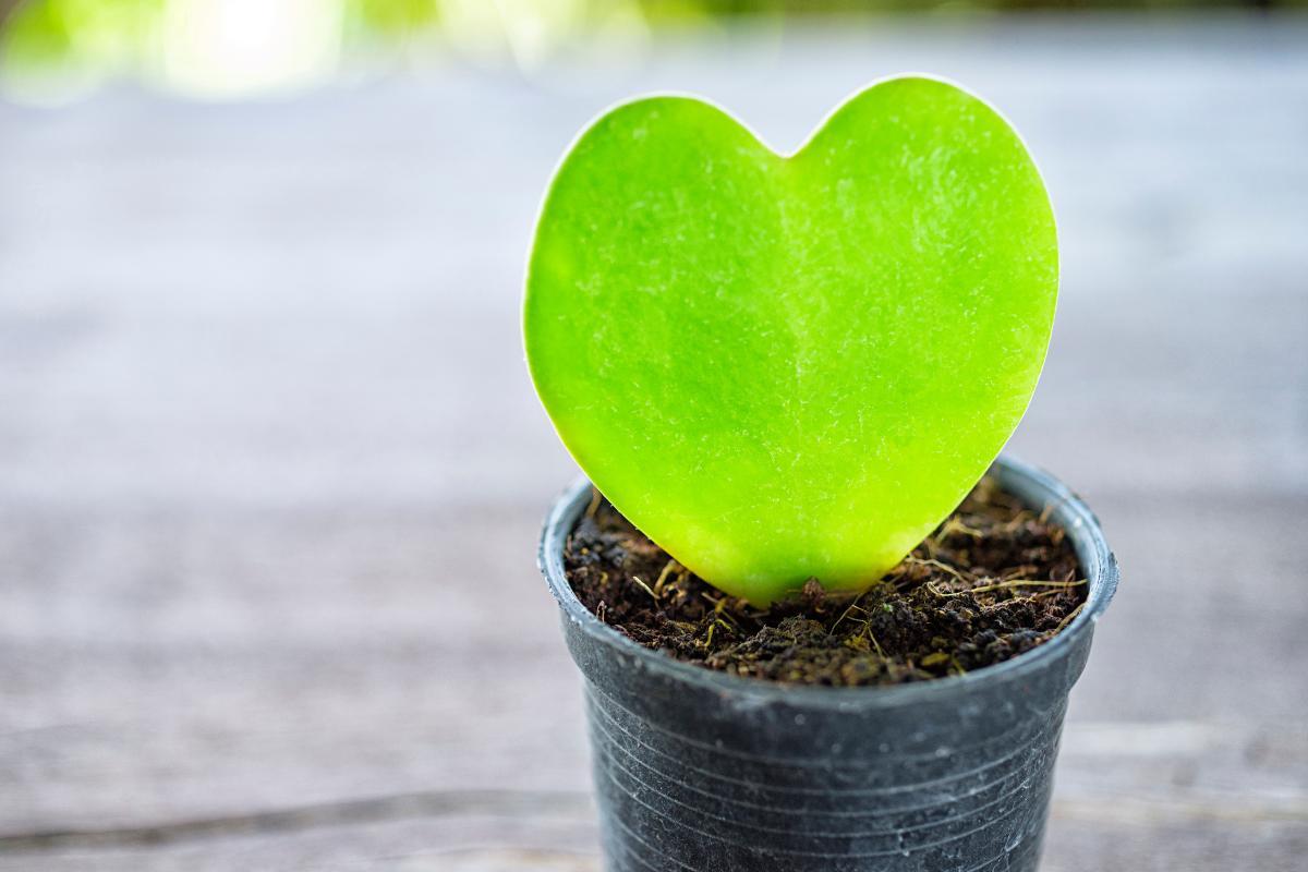 Perhaps it is the heart-leafed plant to rule all other plants with heart-shaped leaves. The leaves of the Hoya hearts are fleshy and thick, presenting in the shape of a green heart. It is a succulent native to Asia with a strong, woody stem. As shown in the photo, many gardeners prefer to keep it small, preferring to keep just a single leaf heart in the pot and trim others which might grow.