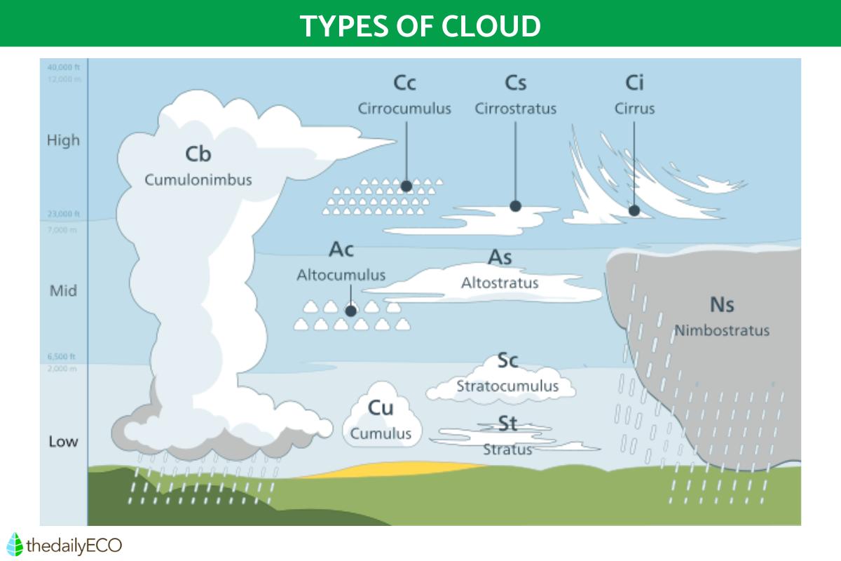 - Updrafts: these clouds form from rising currents of warm, moist air. As the air rises, it cools and the water vapor contained in it condenses to form the cloud.