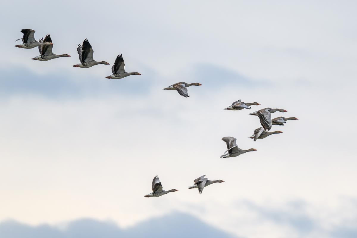 It should be noted that not all species of ducks use this form of flying. There are species with more sedentary habits that can fly in disorganized groups or independently. Generally speaking, migratory birds have a larger heart to allow for sustained flight, among other adaptations[3].