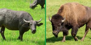 Among the differences between the water buffalo (Bubalus bubalis) and the bison (Bison sp.), greatly different geographic populations and habitat preferences stand out as some of the most significant. Other differences include the length of horn, density of fur and many others. thedailyECO provides a guide...