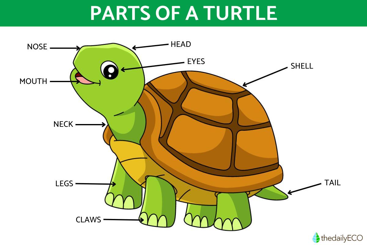 We get to know basic turtle anatomy better by looking at the body parts of a turtle. We provide a list of turtle parts, as well as a diagram to better illustrate them.