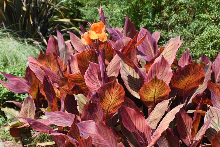 Known for its beautiful tropical flowers the Indian shot, African arrowroot or edible canna is also known as a plant of great ornamental value thanks to the coloration of its leaves. These large leaves can have different shades ranging from green to red. Some variants have different patterns such as striped leaves with two colors. Like some of the other species of plants with colorful leaves, the Indian shot needs water and sun to favor its development. For this reason, it is often grown nears ponds or other water features.