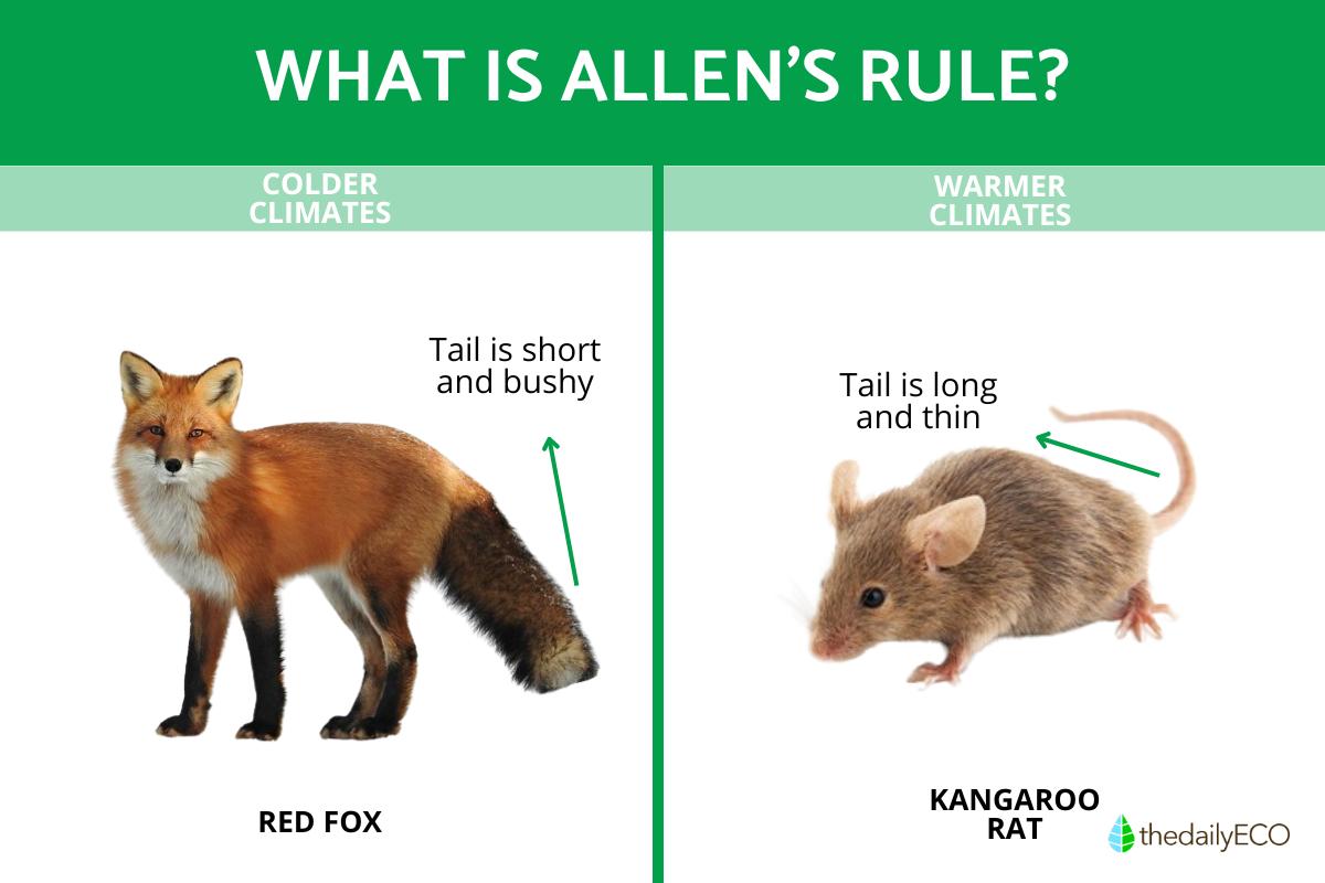Allen's rule, formulated by Joel Asaph Allen in 1877, complements Bergmann's rule by addressing appendage size in warm-blooded animals. Unlike Bergmann's rule, which focuses on overall body size, Allen's rule emphasizes the correlation between ambient temperature and the size of body appendages such as ears, tails, and limbs.
