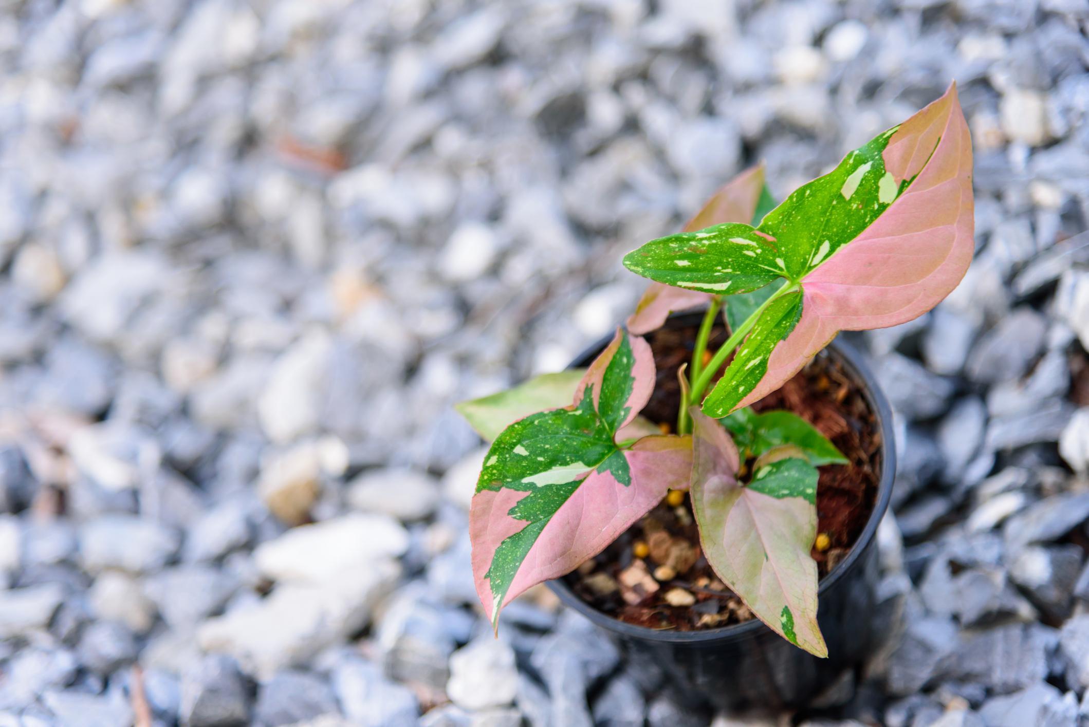 - Syngonium podophyllum 'Pink Allusion': has has pastel pink leaves