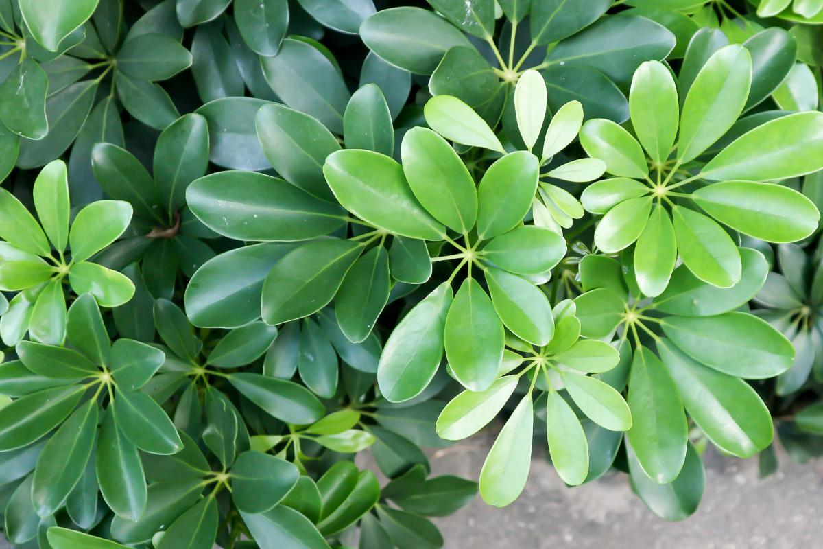 Heptapleurum actinophyllum is a shrubby tree with a thin trunk that at the tip develops several umbrella-shaped leaves. As a tree, it can tolerate full sun exposure, but it can still thrive in partial shade. Although the outdoor trees can grow to be relatively large, it has been cultivated as house plant in temperate regions. It is these houseplants which are considered one of the best partial-shade plants since they do not need full sun exposure.