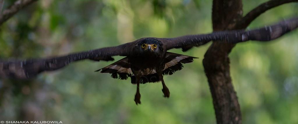 The crested eagle (Morphnus guianensis) is a large species of eagle found in lowland rainforests and gallery forests in Central and South America. The crested eagle can grow up to 89 cm (35 in) long, with a wingspan up to 176 cm (69 in), and weigh up to 3 kg (6.6 lb). It is smaller than the harpy eagle and, like it, hunts mammals, birds, and some reptiles and builds its nests in trees.