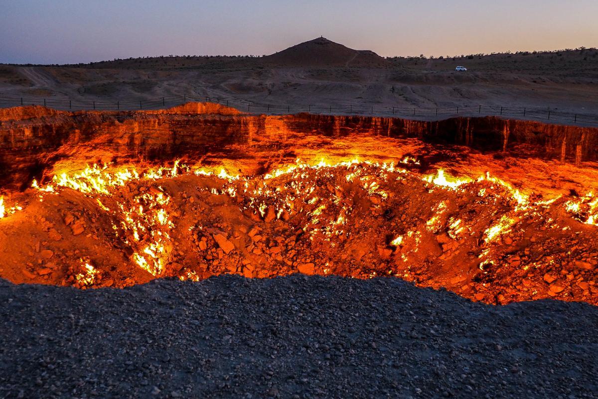 The gas reserve in this area ranks among the largest in the world. Locals have aptly nicknamed the region the "Gate to Hell" due to the massive crater, measuring 70 meters (230 feet) in diameter, from which a fiery orange glow and bubbling mud continuously erupt. Hot spots extend over an area of nearly 60 meters (200 feet) and reach a depth of 20 meters (66 feet).
