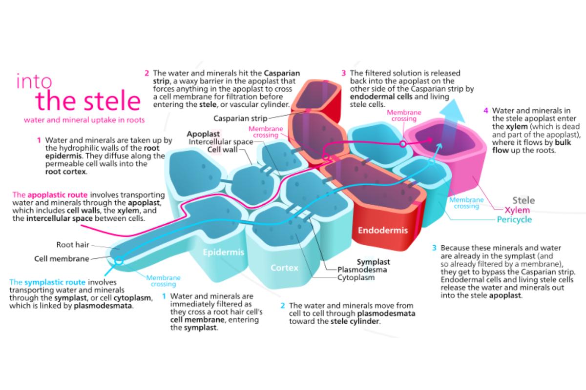 The plant epidermis provides physical protection from the elements, but it also prevents water loss, regulates oxygen exchange and absorbs nutrients from the substrate. The latter occurs in the underground plant tissues, specifically in the roots.