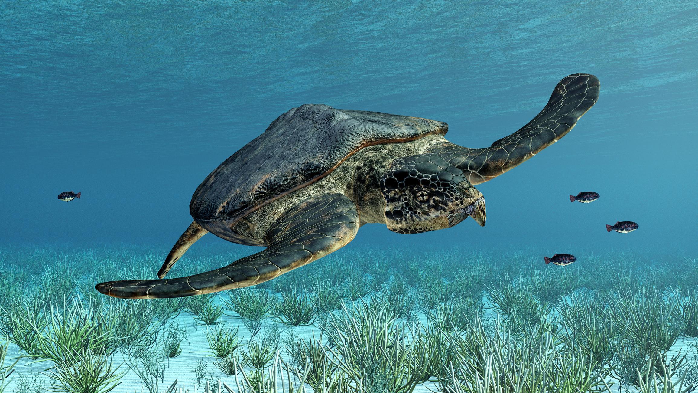 It is an extinct genus of sea turtles belonging to the family Protostegidae. They measured up to 5 meters long and weighed more than 2,200 kilograms. They during the Upper Cretaceous. Their shell was reduced, like today's leatherback turtles, and its tail was tapered. In addition, it had a very large beak with which it could feed on squid, pelagic mollusks and other animals of various sizes. They could also use it to break shelled animals.