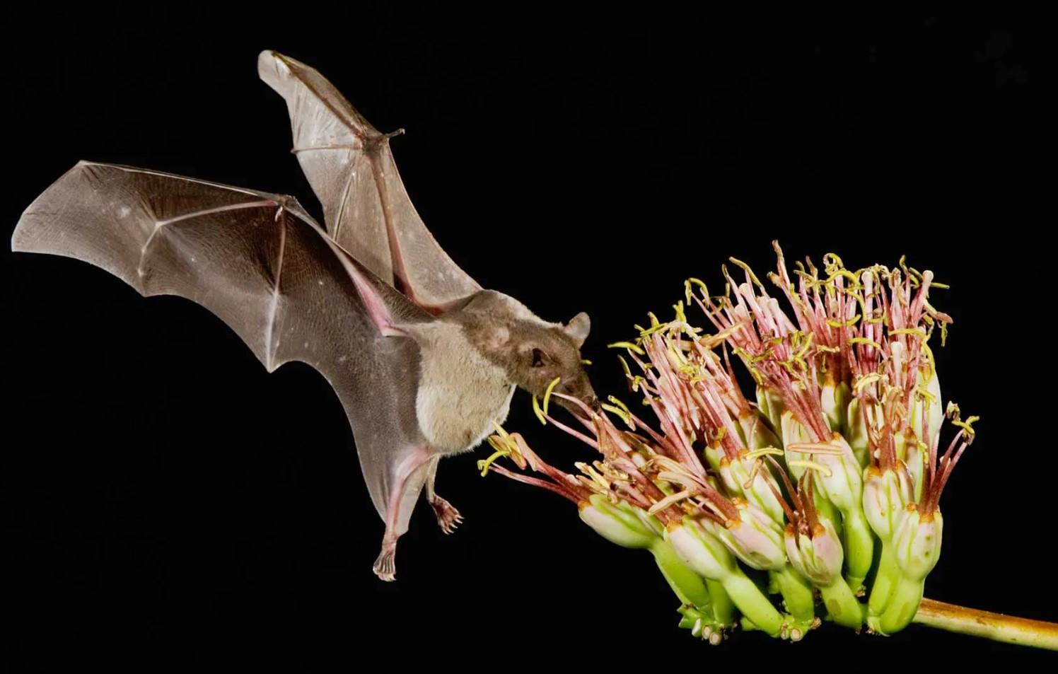 When we think of animals that pollinate, we may think of insects first. However, there are mammals that pollinate. One of the most important are nectar-eating bats. Together with the lesser long-nosed bat (L. yerbabuenae) the greater long-nosed bat us responsible for pollinating the maguey. This is the plant from which tequila, mezcal and pulque are obtained. Once the flower emerges the plant will die, so it must be cut before flowering for the tequila industry. To ensure the survival of the plant, some flowering plants are usually left.