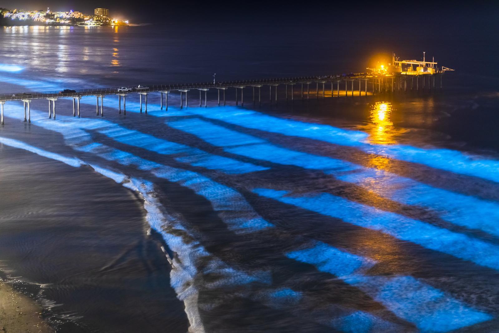 - Light availability: while bioluminescent organisms can have the chemical reaction that emits light during daylight hours, it will not be visible if there is a lot of ambient light. We can only usually observe bioluminescent beaches at night or during other periods of low light.