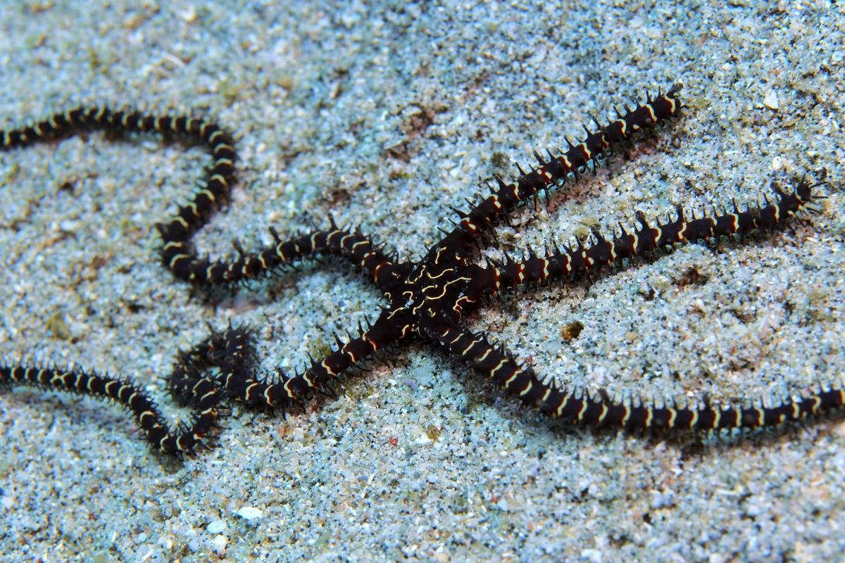 Brittle stars are marine organisms that look very similar to starfish. This is no coincidence since they are both closely related in terms of evolution. Both are of the phylum Echinodermata, but brittle stars make up the class Ophiuroidea. The name of this class derives from ancient Greek, with ophis meaning ‘serpent’ and ura meaning ‘tail’. This alludes to the movement of their long, thin arms which is reminiscent of the slithering of a snake. For this reason, they are also known as serpent stars.