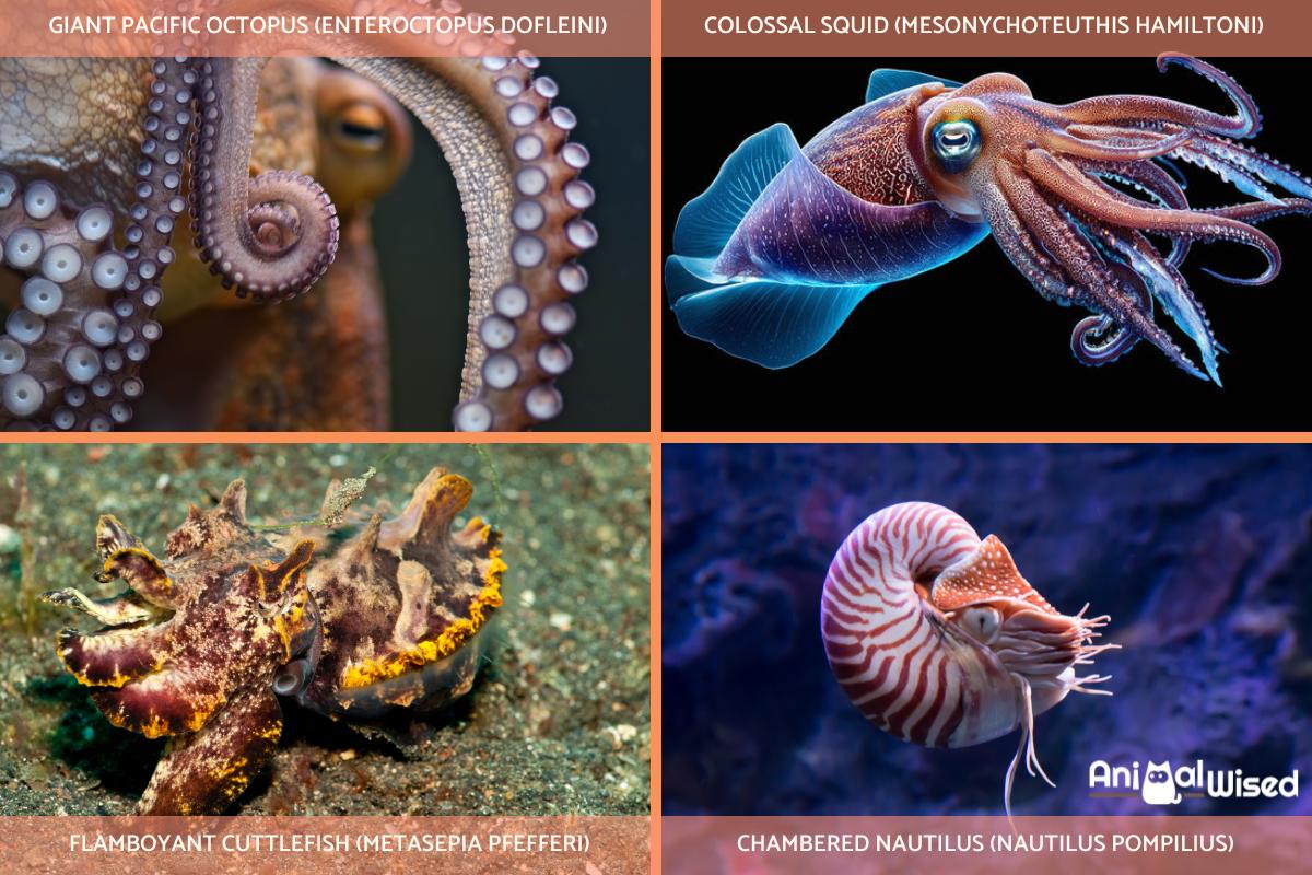 - Coleoidea: this group includes all other living cephalopods, such as octopuses, squids, and cuttlefish.