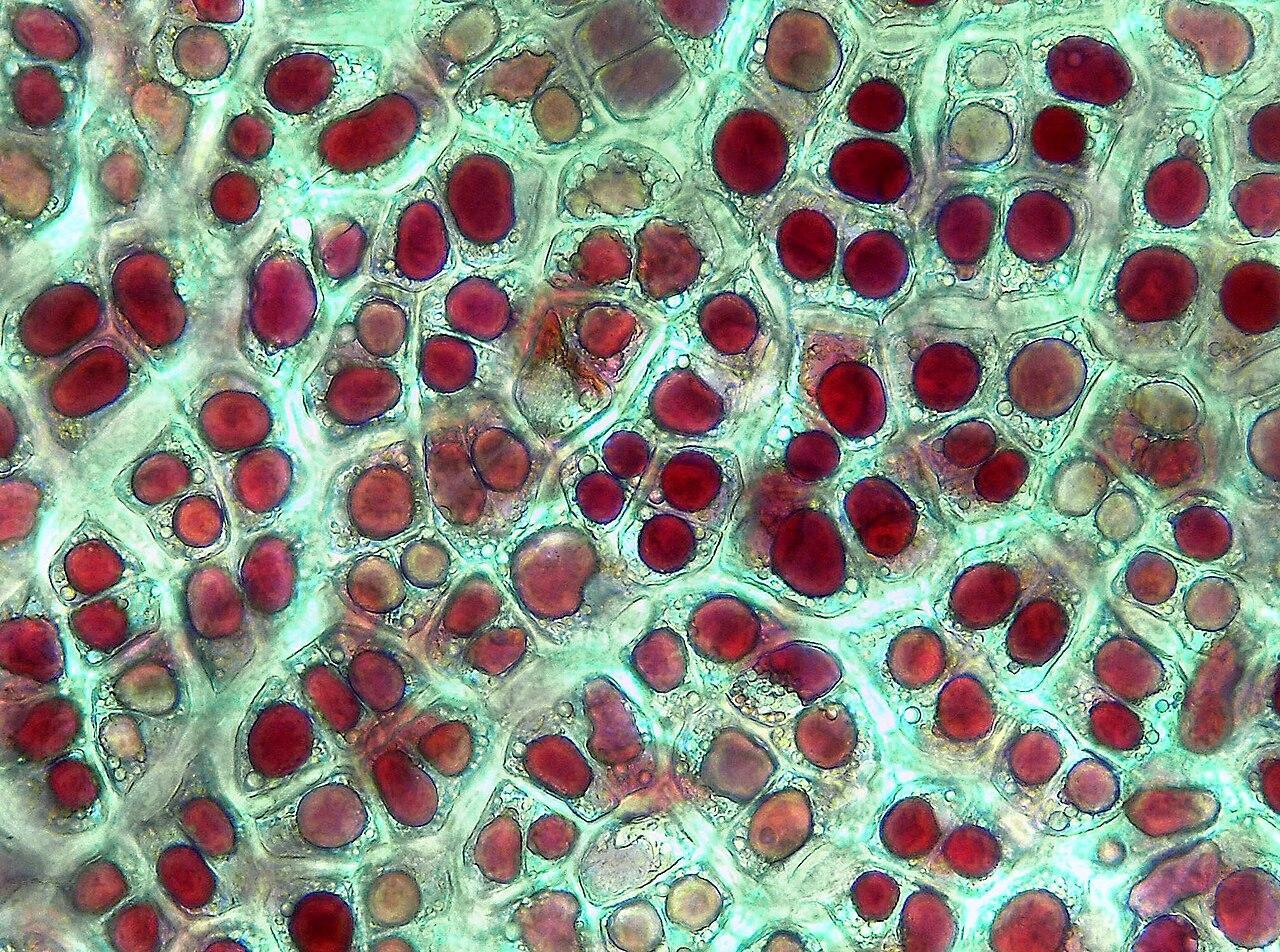 A chromoplast is a type of cell organelle which is found in eukaryotic organisms such as plants and algae. They are a type of plastid, organelles which are responsible for the storage and synthesis of various molecules. Chromoplasts are characterized by the ability to store carotenoid pigments. These pigments are responsible for giving various flowers, fruits and vegetables their distinctive yellow, orange and red hues. This accumulation of carotenoids is noticeable in many plant organs, contributing to the diversity of colors we observe in nature.