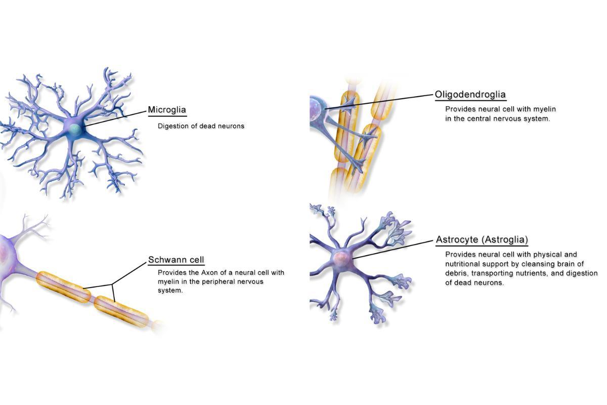 There are different types of glial cells, each with their own particular function. We look at each glial cell in more detail below, providing information on their structure and function.