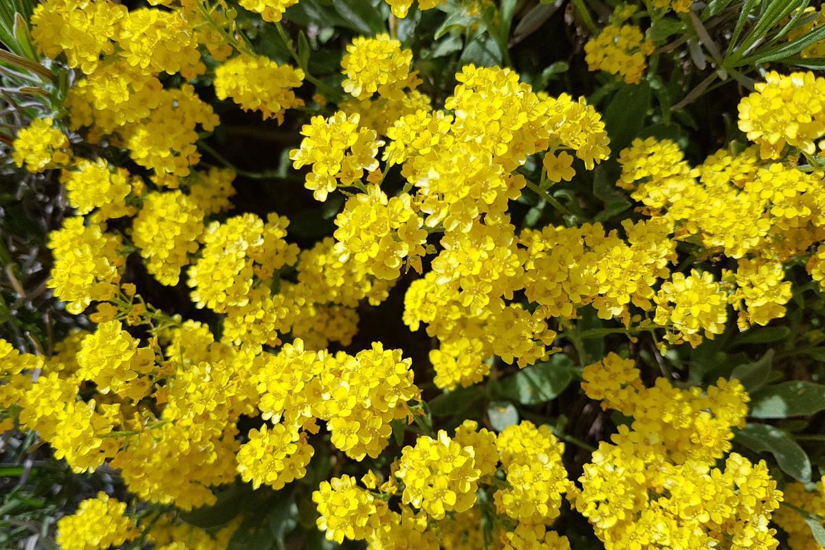 Basket of gold earns its name from clusters of bright yellow flowers that spill over walls and containers each spring. This Mediterranean native thrives in hot, sunny spots with well-draining soil. Its Latin name "saxatilis" means "growing among rocks," reflecting its natural habitat on sunny Mediterranean hillsides. The plant's silver-gray foliage stays attractive even when not in bloom.