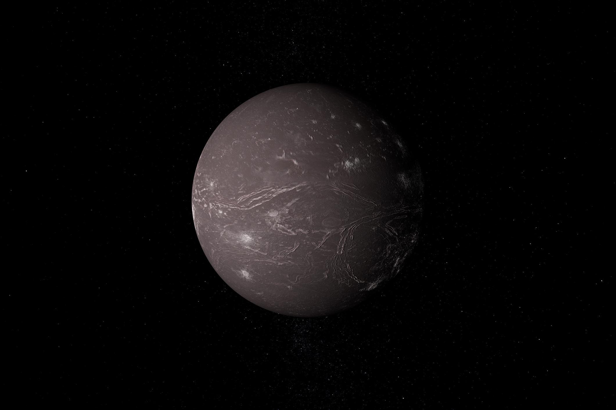 With a diameter of 1,041.3/1,675.8 km, Titania is neither more nor less than the largest moon of Uranus. It has an average temperature of -203 ºC/-333.4 ºF and an orbital period of 8.7 Earth days. Satellite images show impact craters, but to a much lesser extent relative to other moons, suggesting that it may have recently rejuvenated.