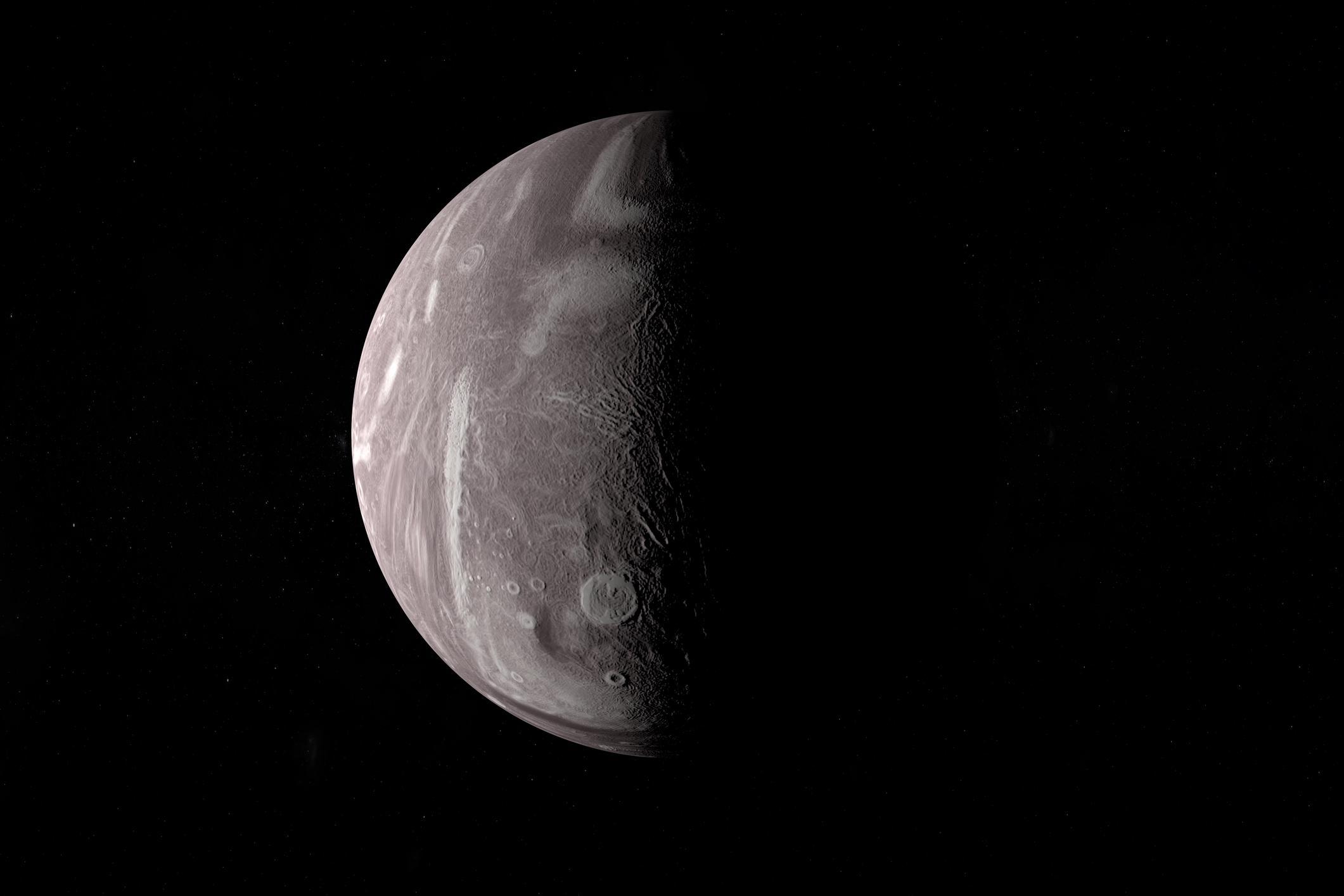 In terms of size, Oberon is the second largest moon of Uranus, at 946 mi/1,522.8 km in diameter. The average temperature is -198 ºC/-324.4 ºF and the orbital period is 13.46 Earth days. The images show the presence of a mountain at least 3.7 mi/6 km high on its surface, along with numerous impact craters, some of which exceed 124 mi/200 km in diameter.