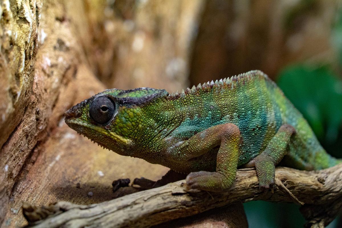 Some chameleon species, such as veiled chameleon (Chamaeleo calyptratus) or panther chameleon (Furcifer pardalis) possess an extra layer of reflective crystals beneath the chromatophores. These crystals can scatter or reflect incoming light, further contributing to the final color we see. The way light interacts with these crystals can also influence the perceived color.