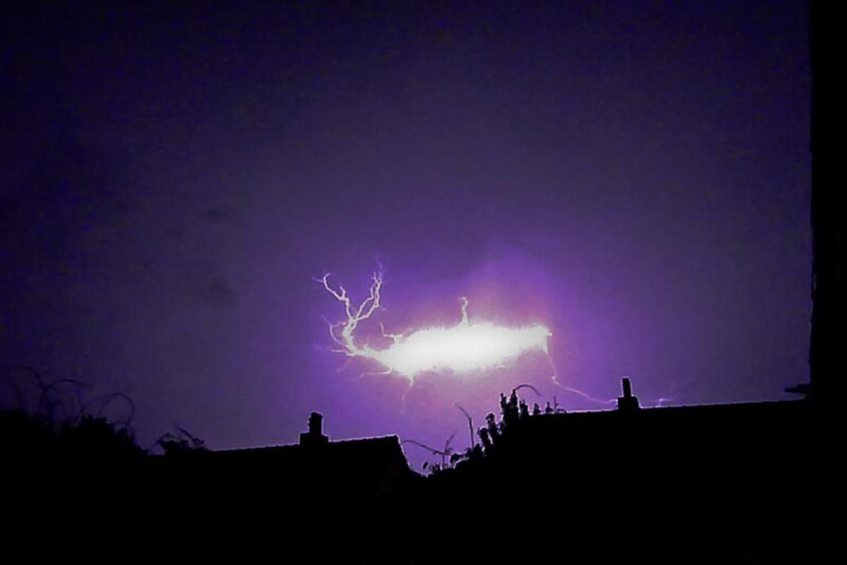 - Ball lightning as we have stated, ball lightning is electrical discharge in the form of luminous spheres that can vary in size and color. They form during thunderstorms when there is a buildup of electrical charges in the atmosphere. Unlike conventional lightning, it doesn't follow a linear path between clouds and the ground. Ball lightning has a more compact shape and moves erratically and often slowly through the air. These phenomena are relatively rare and are often the subject of study and research due to their intriguing and poorly understood nature.